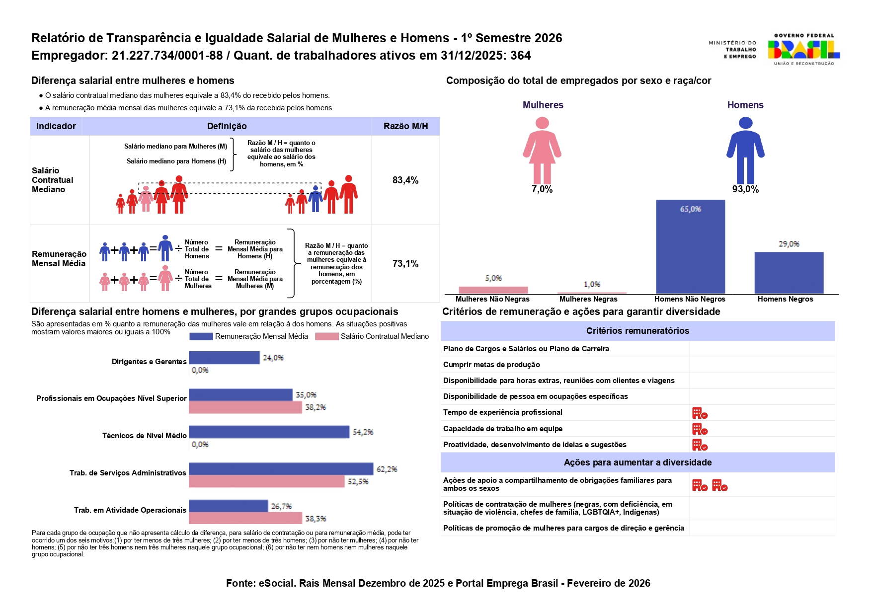 Relatório de Transparência e Igualdade Salarial 1 Sem. 2026